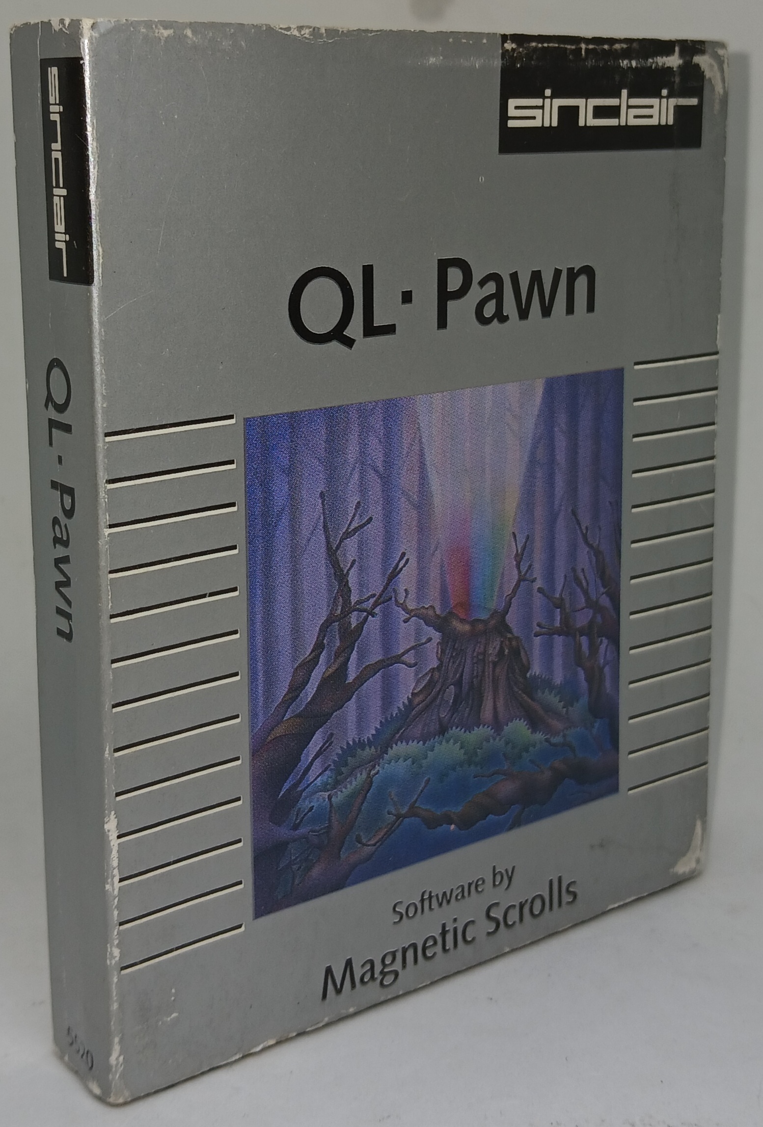 Notes: My game cartridge has some corruption. Screenshots are from the version that is freely available online (e.g. from Dilwyn's site where there are authentic cartridge dumps of both cartridges, here: Sinclair QL Software-Games Page (dilwyn.me.uk)). Elaborate copy protection makes loading a little complicated - you have to first make two different backups (hence the space for four cartridges in the box), then use the first of those in connection with the 'Key' cartridge until you are prompted for the second. It's a bit fiddly initially. Manual shown since upgraded to a cleaner example.